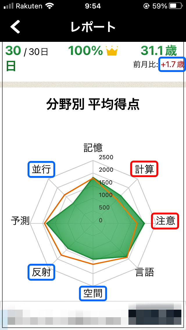 前月欠けてた「計算力」と「注意力」は持ち直しましたが
